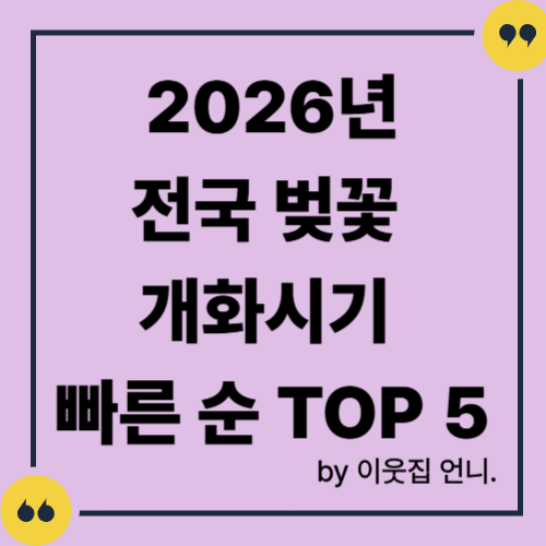 2026 전국 벚꽃 개화시기 빠른 순 TOP 5