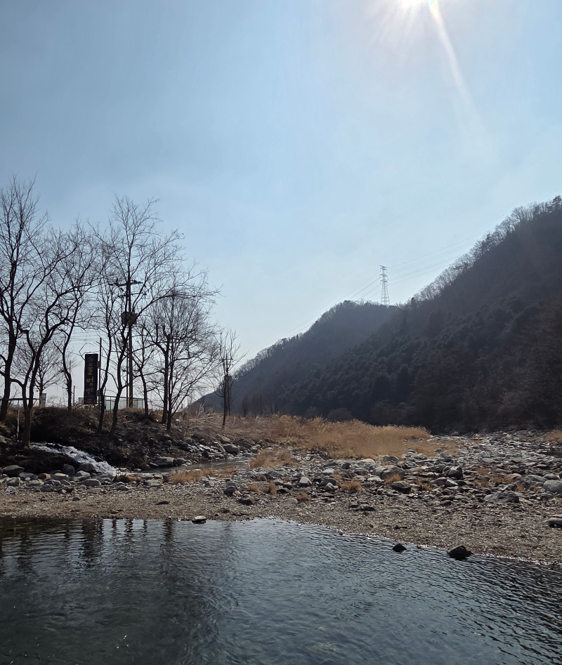 캠핑장으로 들어온 길 건너편에는 계곡이 있는데 물이 되게 깨끗하더라구요.