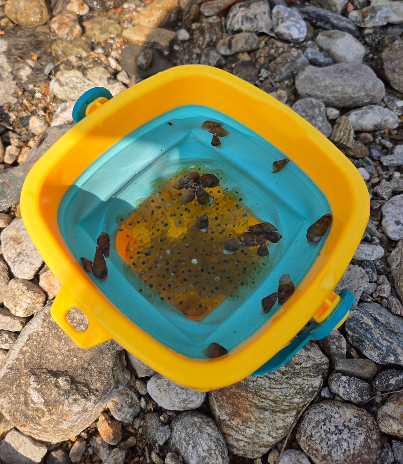 낮은 계곡에서는 개구리알이랑 물고기, 고동을 잡고,