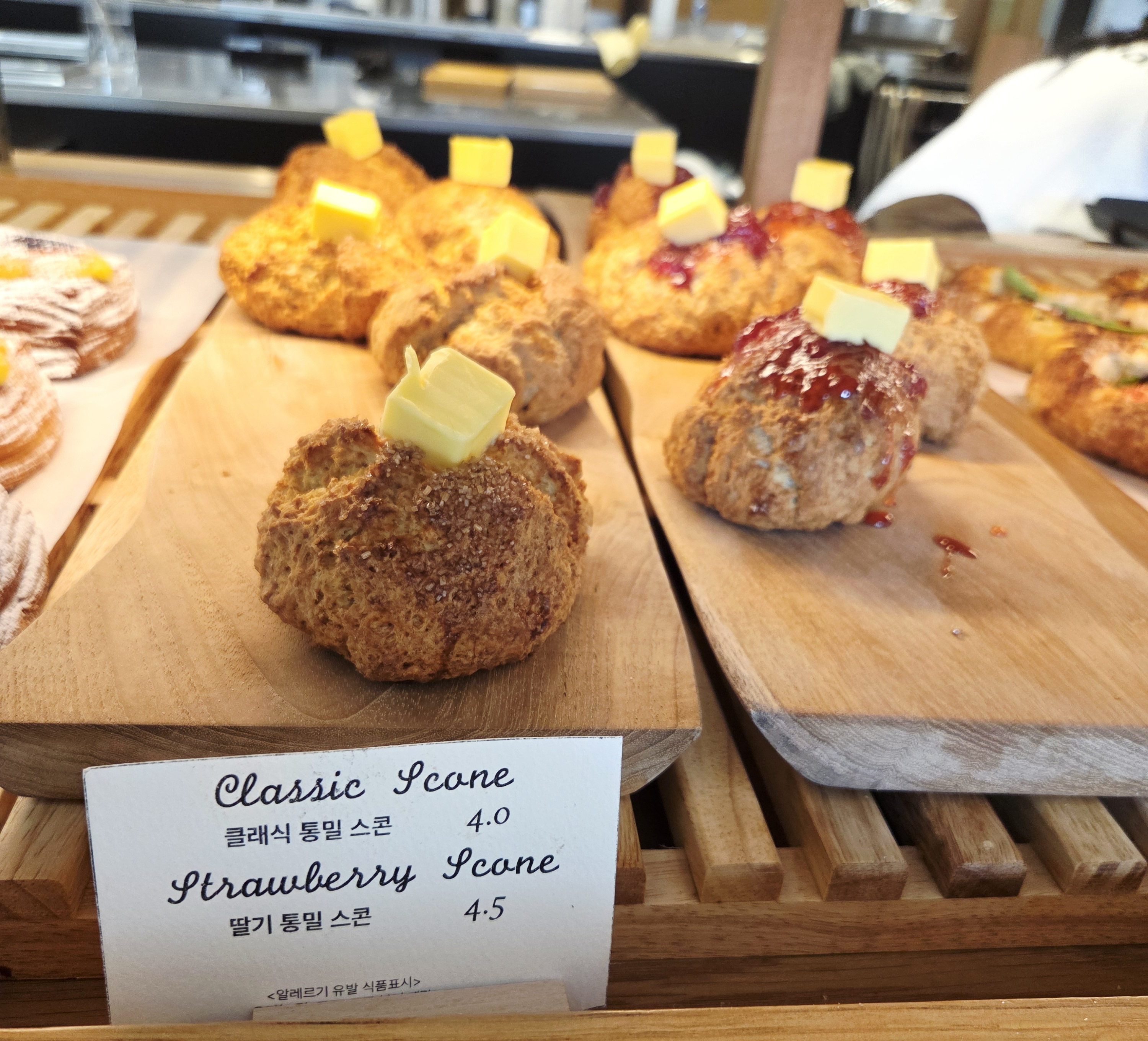 여긴 베이커리도 꽤 많아요. 소시지 페스츄리(7,000), 소금빵(3,000원이면 진짜 착하죠?), 스콘(4,500원), 치아바타(6,500원) 등