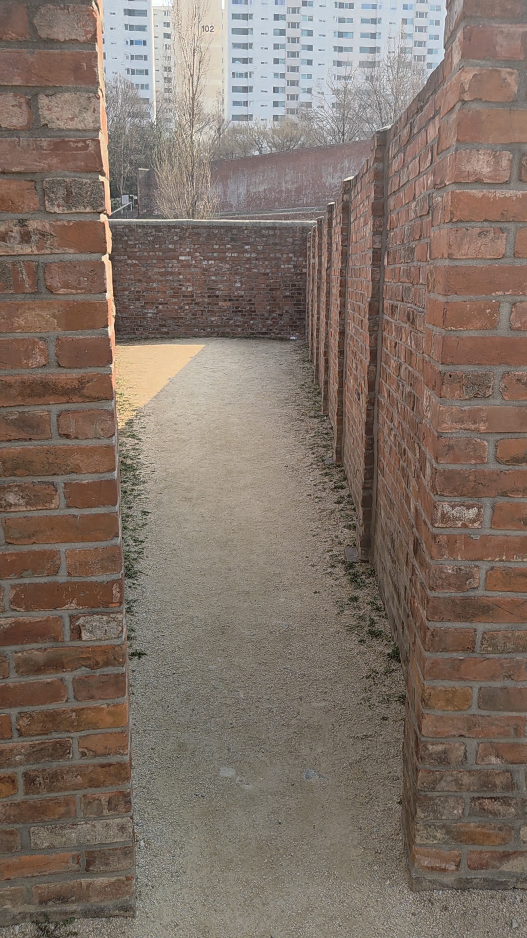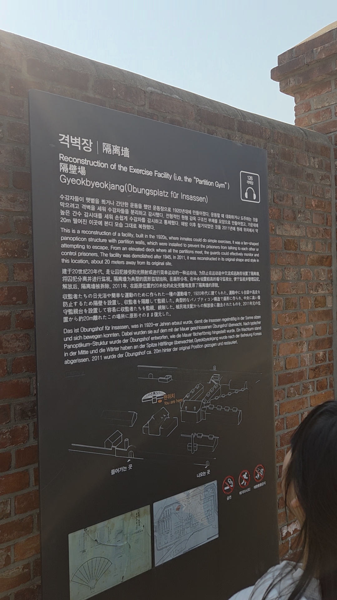 그 다음은 격병장이라는 곳인데 수감소에서 햇볕을 못보는 수감자들이 잠깐 햇볕을 쬐일 수 있도록 만들어 놓은 곳이예요. 여기 수감소는 대화 자체가 되지 않는 곳이라 격벽장에서도 대화를 할 수가 없었는데 .. 대화를 할 수 없도록 구조자체를 희안하게 만들어놨더라구요. 아래 사진의 벽돌이